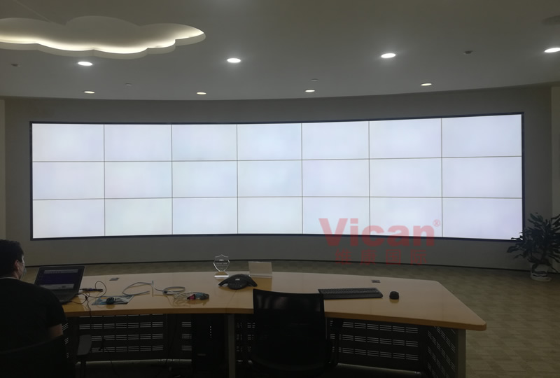这套大屏采用3行7列、55寸液晶拼接屏,双边拼缝为3.5mm,主要用来视频监控及大数据显示使用。
