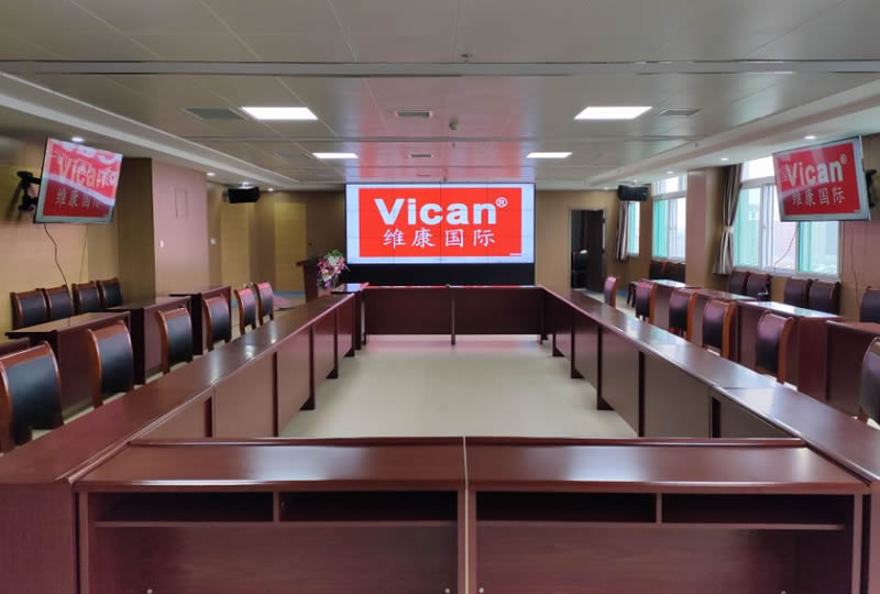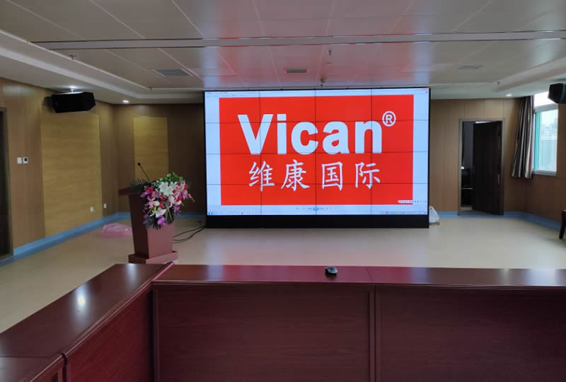 潍坊医学院眼科中心这套大屏采用4x4拼接、55寸3.5mm液晶拼接屏,用于会议信息显示。