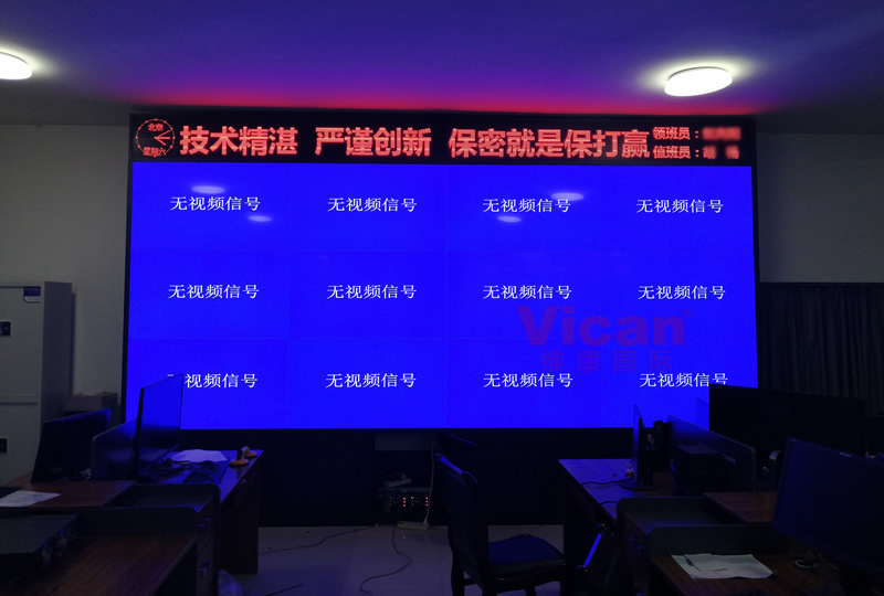 维康国际为河南某部队提供的这套会议大屏,采用3行4列、55寸液晶拼接屏,产品性能稳定,超窄边设计,双边拼缝仅有0.88mm,如上图所示,有着很好的画面一体化显示效果。