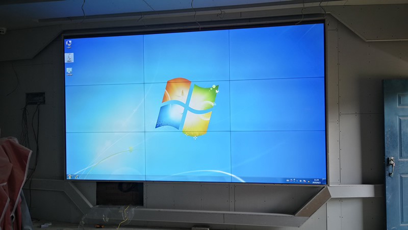 我公司为昆明南方电力大学提供的这套高清大屏,采用3x3拼缝、55寸液晶拼接屏,双边拼缝仅有0.88mm,大屏幕清晰亮丽,一体化显示效果很好,如上图所示。