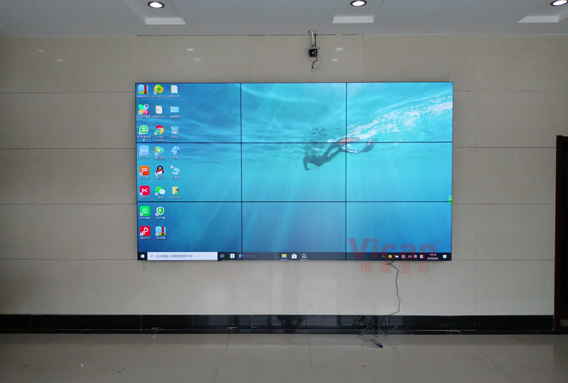 维康国际为永和县人民法院提供的这套高清显示大屏,由3行3列49寸拼接屏组成,双边拼缝为3.5mm,采用内内嵌式安装,与前面成一体,更显美观大气,前维护支架,后期如若需要维护更简单便捷。