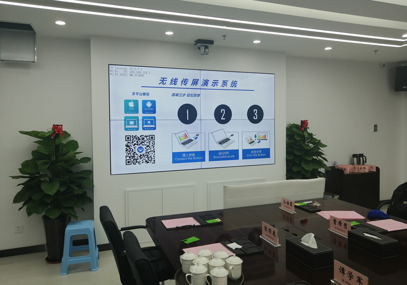 近日,维康国际为中铁某局提供了一套会议大屏,采用2x2、55寸0.88mm液晶拼接屏,画面清晰亮丽、超小拼缝设计,有着很好的一体化显示效果,如上图所示,与墙面形成一体,美观大气。