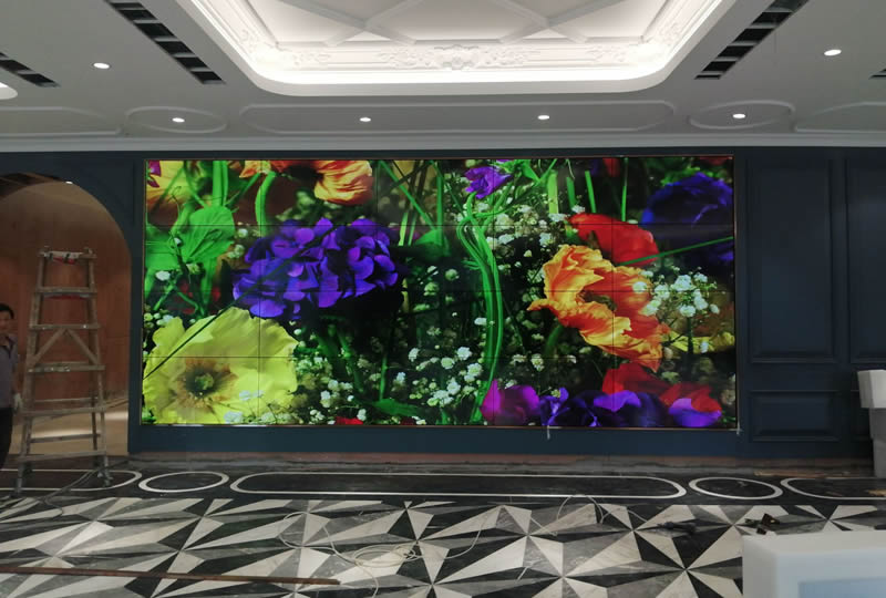 该案例中,维康国际为其提供一套商显拼接屏,主要用来宣传楼盘信息与广告发布,如上图所示,大屏幕由4x5拼接、55寸3.5mm液晶拼接屏组成,画面显示清晰亮丽,视觉震撼。