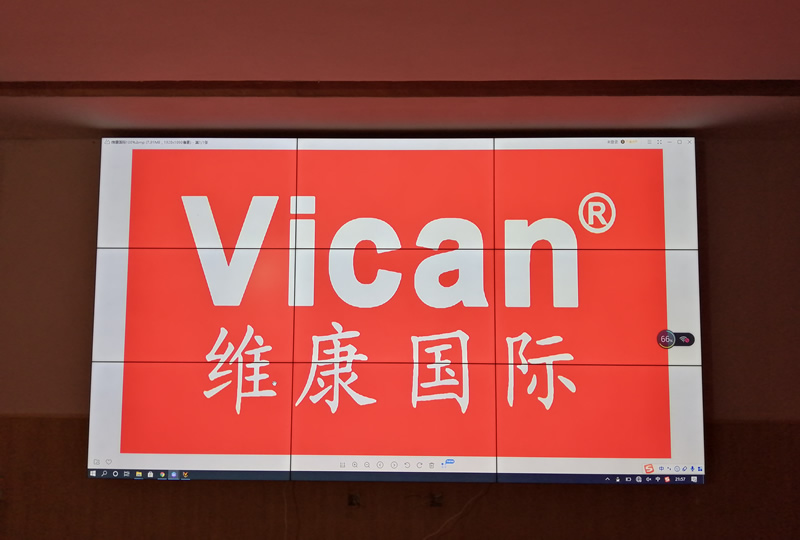该案例中,维康国际为其提供一套液晶显示屏,采用3x3拼接、55寸3.5mm液晶拼接屏,画面显示清晰、色彩好,拼缝也较小。