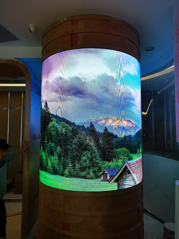 本案例中,维康国际为佛山市某企业展厅提供一套显示大屏,采用圆柱形拼接的LED显示屏,点间距为2mm,如上图所示。