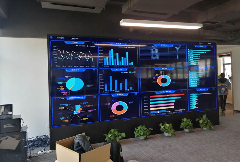 本案例中,维康国际为广州市白云区某服装电商公司提供一套大数据显示屏,由3x4拼接、55寸超窄边液晶拼接屏组成,采用点对点大数据显示解决方案,让大屏幕的分辨率更高、显示更清晰细腻。