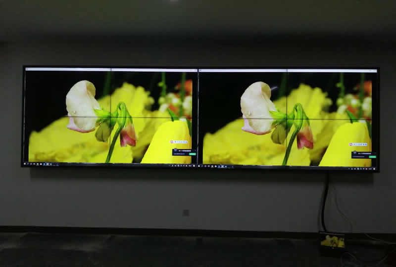 本案例中,维康国际为佛山某民政局提供一套显示大屏,安装在办事大厅边上,采用2x4的55寸液晶拼接屏,LG1.8mm原装面板,大屏画面清晰亮丽,一体化显示效果好。