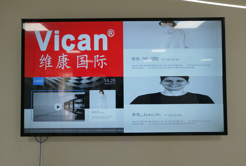 本案例中,维康国际山东大学长清校区提供了一套会议大屏,采用100寸会议一体机,大屏幕4K高清显示,显示尺寸为2158.848mm x 1214.352mm,采用壁挂式安装,主要用来会议显示使用。