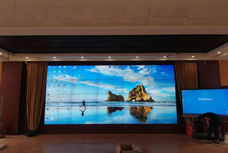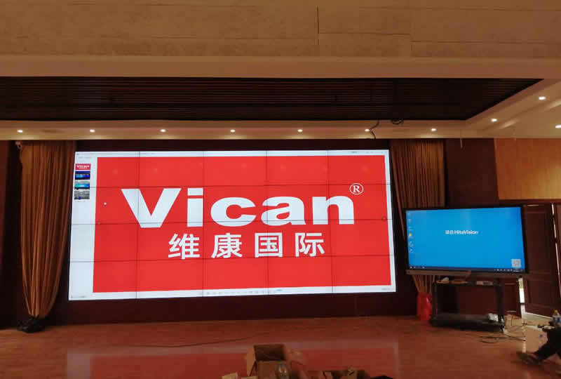 本案例中,维康国际为福建泉州某服装厂提供一套室内的舞台显示大屏,采用4x5拼接、55寸液晶拼接屏,LG超窄边1.8mm液晶面板,大屏幕画面清晰,一体化显示效果好。