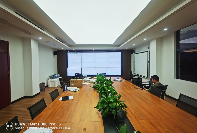 本案例中,维康国际为深圳市大鹏水利局提供了一套会议显示大屏,由3x4、55寸液晶拼接屏组成,屏体为LG1.8mm原装面板,采用前维护式安装。