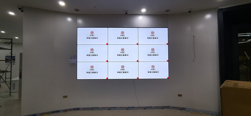 本案例中,维康国际为中国工商银行某分公司提供多套显示屏,采用46寸和55寸超窄边液晶拼接屏,根据不同的区域显示需求,选择3x3、2x3、2x2等多种拼接方式,大屏幕显示清晰、分辨率高、色彩丰富、性能稳定。