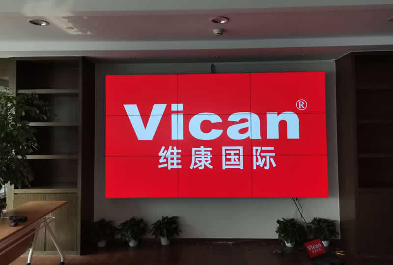 这套会议室显示屏采用的是3行3列、55寸拼接屏,京东方3.5mm液晶面板,色彩丰富、白平衡效果好,壁挂式安装,更美观、简洁。