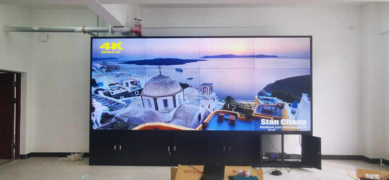 本案例中,维康国际为毫州市某中学提供了一套会议大屏,由3行4列、55寸液晶拼接屏组成,采用0.88mm超窄边液晶面板,有着很好的大屏幕画面一体化显示效果。