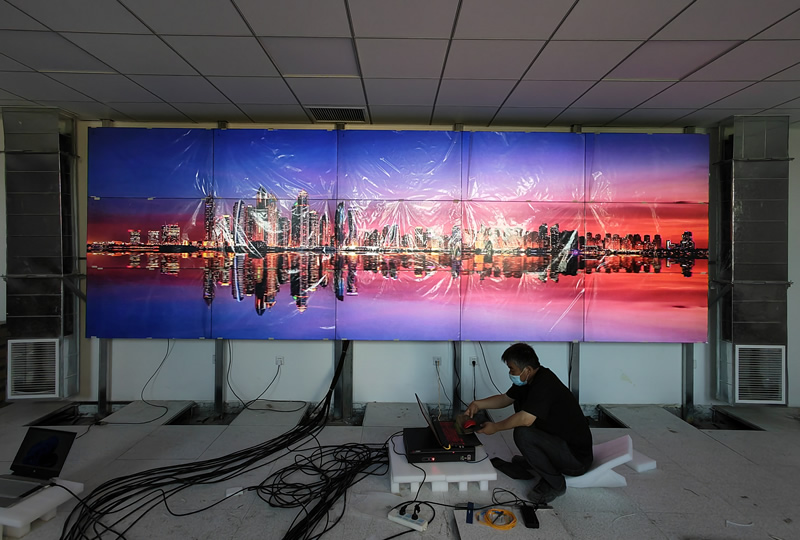 本案例中,维康国际为河北保定卷烟厂提供一套监控大屏,采用3行5列、55寸LG液晶拼接屏,拼缝为3.5mm,采用前维护液压支架安装,维护更简单便捷。