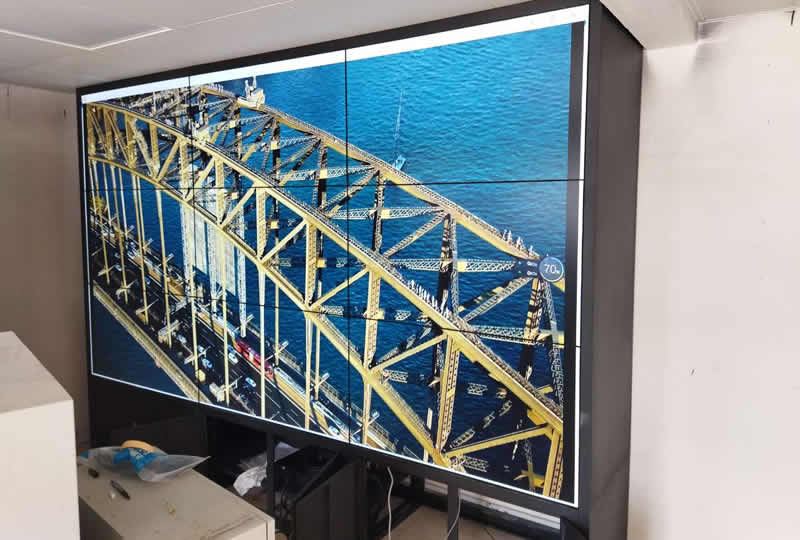 本案例中,维康国际为青岛市海宇城提供一套会议大屏,由于3行3列、46寸拼接屏组成,采用46寸3.5mm京东方原装面板,大屏幕显示清晰亮丽。