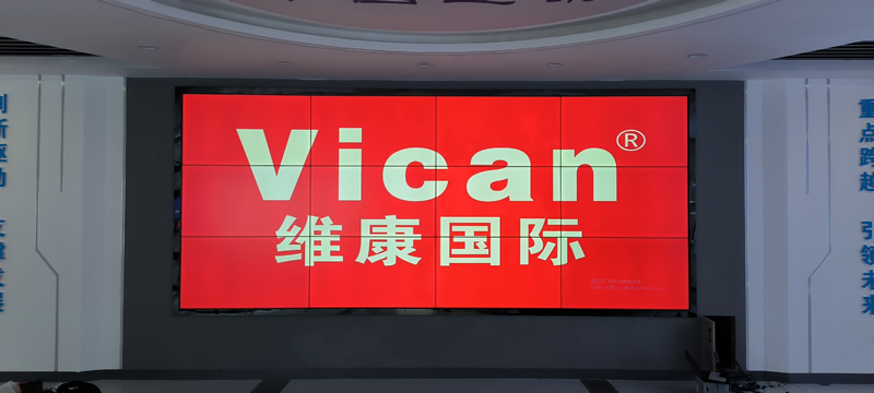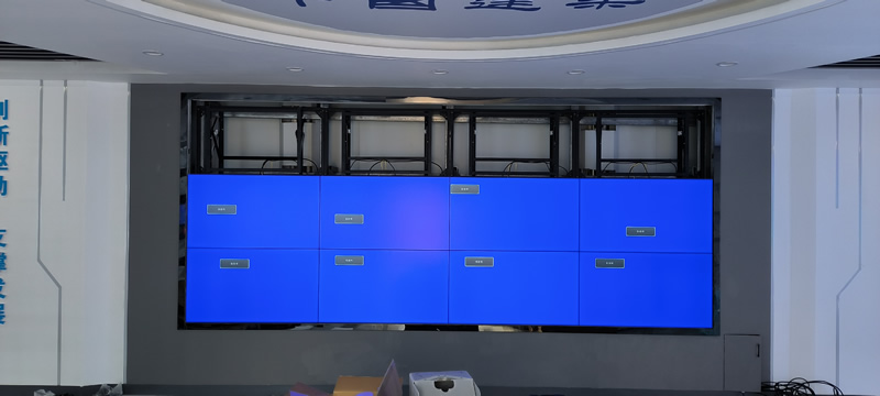 本案例中,维康国际为中建八局安图县某项目部提高一套会议室显示大屏,采用3*4拼接、3.5mm拼缝的55寸拼接屏,壁挂式安装,更显美观大气。