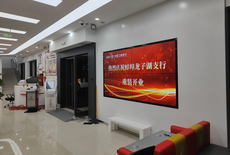 本案例中,维康国际为蚌埠市龙子湖支行提供了一套商显拼接屏,大屏幕画面显示清晰,分辨率高,具有很好的视觉体验效果。
