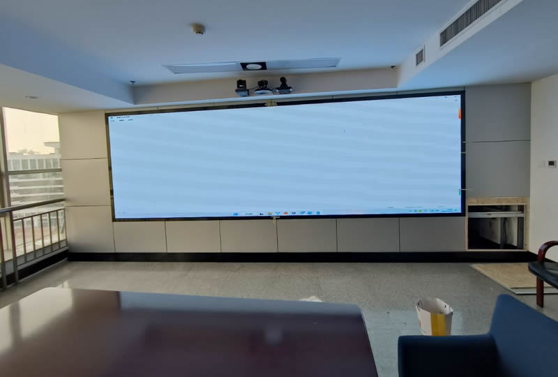 本案例中,维康国际为济南市高新区管理委员会提供了一套会议室LED大屏,如上图所示,大屏幕显示清晰,亮度适中,一体化显示效果好。