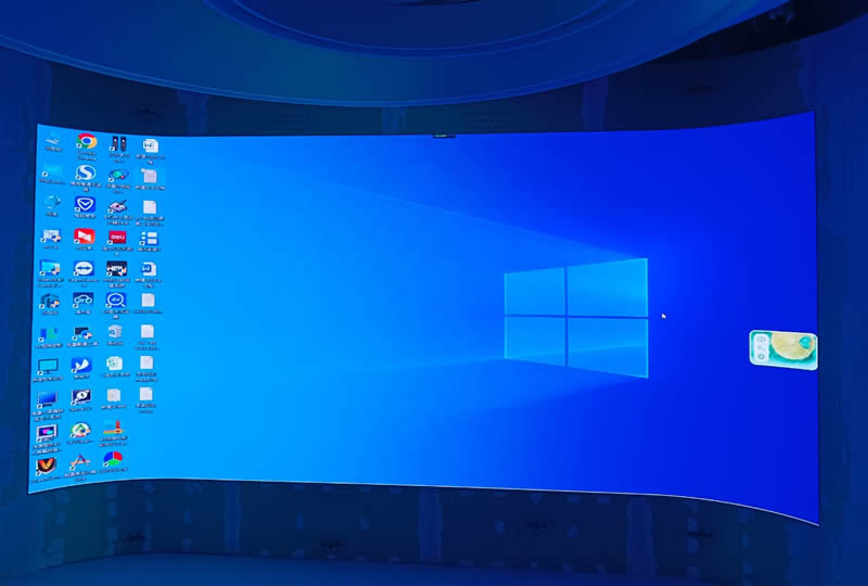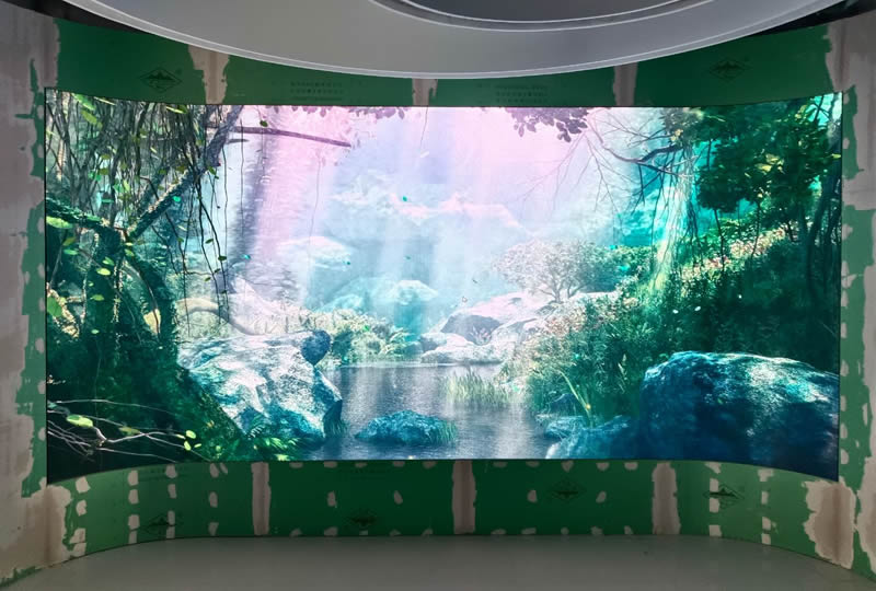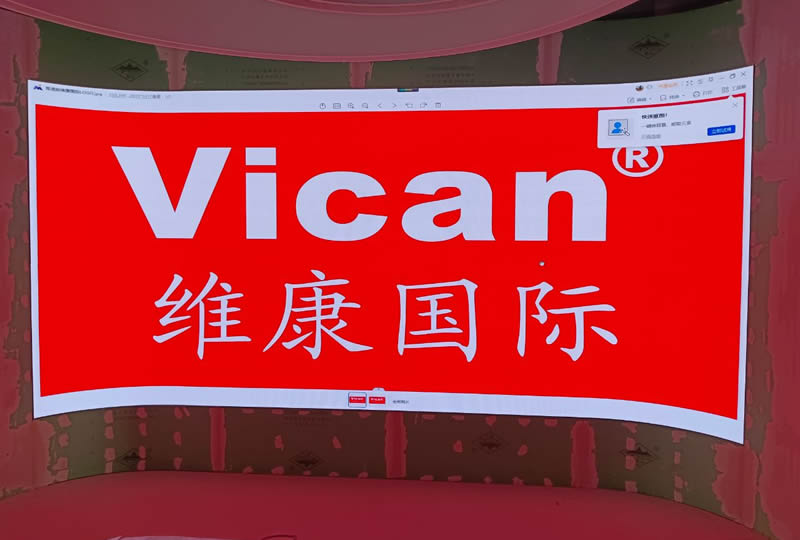 本案例中,维康国际为广州市南沙区金沙某企业提供一套高清大屏,安装在公司前台背景墙位置,采用小间距LED系列,弧形安装,大屏幕显示清晰亮丽,视觉体验效果很好。