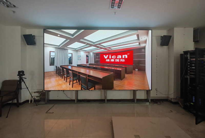 本案例中,维康国际为新疆塔城某公安局提供了一套LED会议显示大屏,如上图所示,采用P1.25小间距LED系列,面积大概十多平方米,大屏幕分辨率高,显示清晰,视觉效果好。