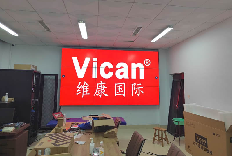 本案例中,维康国际为东营市第十三中学提供一套办公室显示大屏,采用3行3列、55寸液晶拼接屏,0.88mm超窄边LG面板,大屏幕显示清晰,色彩丰富,一体化显示效果好。