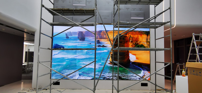 本案例中,维康国际为深圳影石创新公司提供一套展厅LCD大屏,由4x4拼接、55寸液晶拼接屏组成,屏体采用0.88mm窄边LG面板,大屏幕显示清晰,一体化效果好。