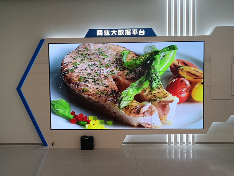 本案例中,维康国际为苏州市某企业 提供一套商业大数据平台显示大屏,采用3行3列、55寸液晶拼接屏,双边拼缝仅有0.88mm,内嵌前维护支架安装,更美观、时尚,后期维护也更便捷,大屏幕显示清晰,色彩丰富,一体化显示效果很好。