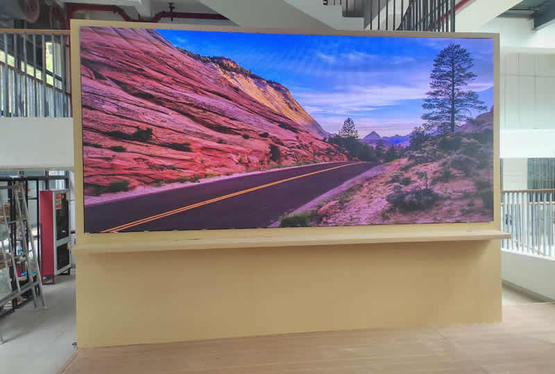 本案例中,维康国际为深圳龙岗某学院教学楼提供一套LED显示屏,采用P2.5全彩LED系列,屏幕约10平方,画面清晰显示清晰,视觉体验效果好。