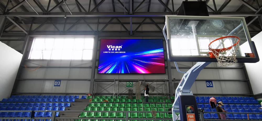 本案例中,维康国际为凉山金阳某体育馆提供3套高清LED显示屏,如上图所示,采用高清、高亮显示屏幕。