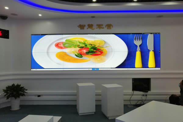这套大屏显示系统由两组55寸0.88mm液晶拼接屏(其中一组为弧形拼接)、一组弧形软模组的p1.875小间距LED、若干台触摸查询一体机组成,如上图所示。
