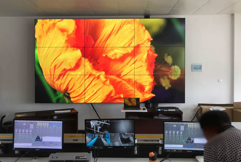 本案例,是维康国际为长沙牛力建设公司提供的一套监控拼接屏,采用3x3拼接、55寸液晶拼接屏,屏体采用三星1.7mm工业级液晶面板,支持全天不间断的长时间工作模式。
