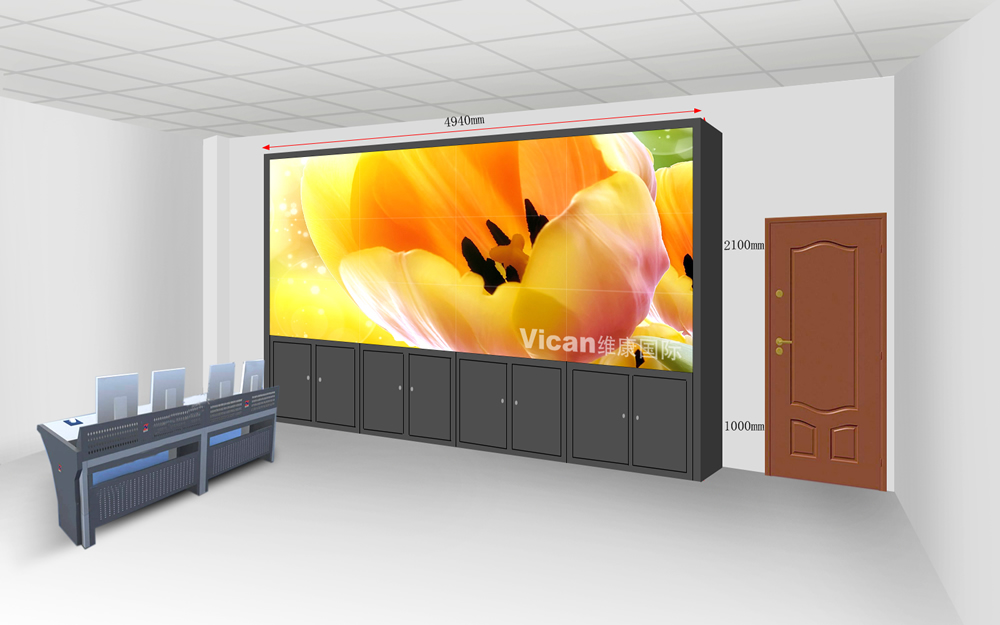 3x4机柜55寸无缝拼接屏尺寸效果图