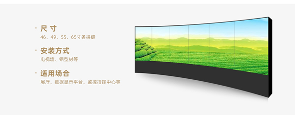 把拼接屏做成一个弧形的显示大屏幕,并不是拼接屏本身是弧形的,而是在安装时通过一定角度的排列实现弧形的显示效果和形状。