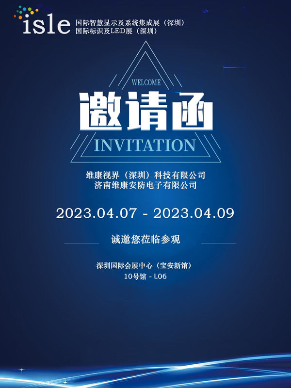 2023年isle深圳国际智慧显示及系统集成展、国际标识及LED展即将开启,维康国际集团旗下维康视界(深圳)科技有限公司、济南维康安防电子有限公司诚邀您莅临参观: