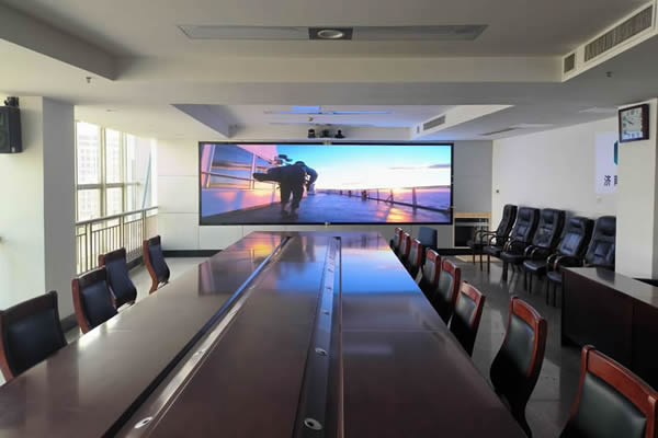 如果会议室的空间较大,则采用LED屏幕更适合,因为这类会议室的观看距离一般较远,对分辨率的要求没那么高,更重视大屏幕画面的一体化显示效果,所以一般会采用小间距LED屏幕。不过,这也是预算充足的情况下,如果成本预算有限,还是选择液晶拼接屏更实惠。