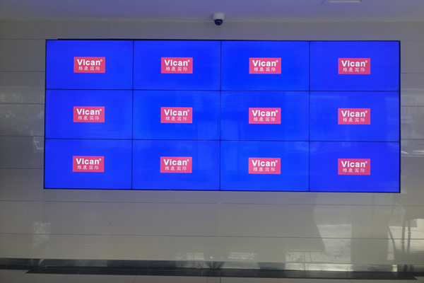 如以上一个案例所使用的12块55寸液晶拼接屏就相当于是180寸左右的屏幕,但是3*4的拼接方式也有一个缺点,其整体的比例不是16:9,这样在播放电脑上的内容时,图像会出现宽屏显示。针对这种情况,维康国际推出“点对点、不变形”会议室解决方案,让显示效果更清晰、图像不拉伸、不变形。