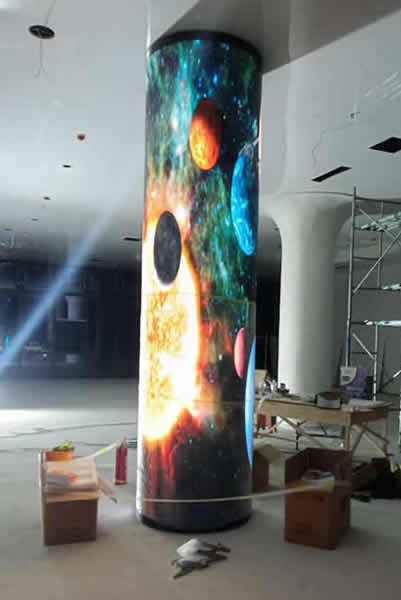 这种屏幕在商场、展馆、写字楼以及各种公共活动区域等地方比较常见,即是在圆柱上安装LED显示屏,360度全方位都可以看到显示画面,当然也有些一些客户是在矩阵柱子上安装的。LED圆柱屏的设计新颖、时尚,契合建筑物的造型,可任意拼接,它的应用场所广泛,是众多媒体展示场所的新宠。不仅能够多角度环视,而且消除观赏死角区,可以达到LED大屏显示的效果。