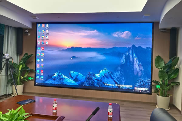 目前,在会议室中比较常用的显示大屏主要有多种,分别是液晶拼接屏、投影机、LED显示屏,它们都具有高清晰、大尺寸、性能稳定等特点。不过,由于液晶拼接屏存在拼缝的影响,在全屏显示时会对画面产生切割感,很多客户会介意这一点而没有选择;至于投影机也是很少客户会选择,因为它的不能进行拼接,而且亮度较低,所以更多的客户会考虑LED显示屏。那么,对于会议室LED显示屏尺寸的选择,主要有从以下几个方面选择: