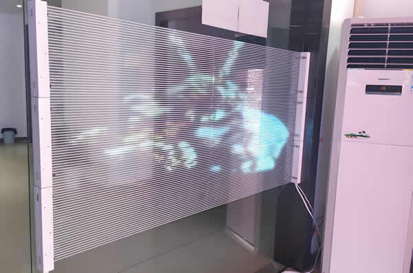 这是一款普通的透明屏,用的也比较多,它的优点是价格便宜,不过它的显示效果一般,在户外与室内场合都可以使用,可以装在商场橱窗玻璃的后面,也可以安装在户外幕墙上,通过拼接成一个超大屏幕显示。