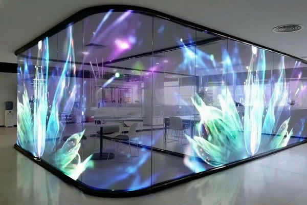 与LED透明屏完全不同,它是采用光学数字显示技术,对透明介质材料进行多层结构调整,只会对激光光源方向的光进行调控,对其他方向的光允许完全透过。从而实现全透明、高清晰的图像显示。当然了,虽然透明显示效果很好,但它的价格是比较贵的。