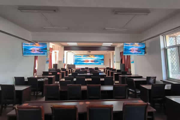 同时,LED显示屏还具有易于安装、操作简单、维保方便的特点,在学校大型会议室的应用是很合适的。尤其是小间距LED系列,如P1.25、P1.53、P1.86等规格,它能够呈现出高清晰的画面,让会议的交流更加顺畅,无论是教学、培训还是会议,都能满足显示效果的需求。