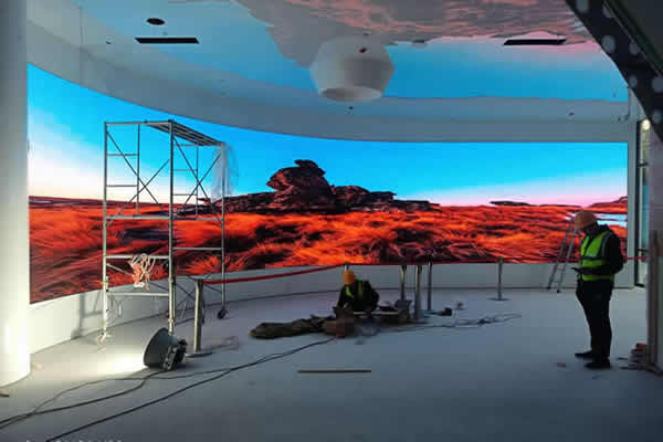 在一些本身是弧形的场合,一些客户想要安装弧形的弧度来安装显示大屏,也有一些是直接需要作出弧形的,而弧形也分别内弧形或外弧形,使用软模组安装都可以实现,如果弧度比较小,那么用普通的支架安装即可;如果弧度比较大,那么就要定制支架,把支架的本身做成弧形结构,然后把软模组贴上去。