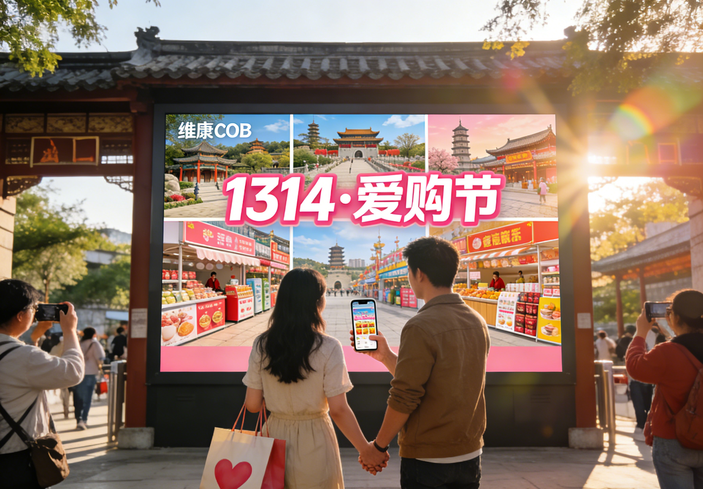 据了解,1314·爱购节已与“中国葛根”“阳新屯鸟”等多个品牌达成年度战略合作,将打通“线上+线下”消费链路,构建跨界融合的产业生态。在未来的线下沉浸文旅场景打造中,维康国际COB显示屏将继续发挥优势,通过超大尺寸、超高清晰度的显示画面,打造沉浸式情感体验空间。例如,在主题文旅场馆中,利用COB显示屏构建360°环绕视觉系统,让消费者身临其境地感受“一生一世”的情感氛围;在智能消费终端,通过高清显示屏呈现产品详情和情感故事,增强消费者的情感共鸣。