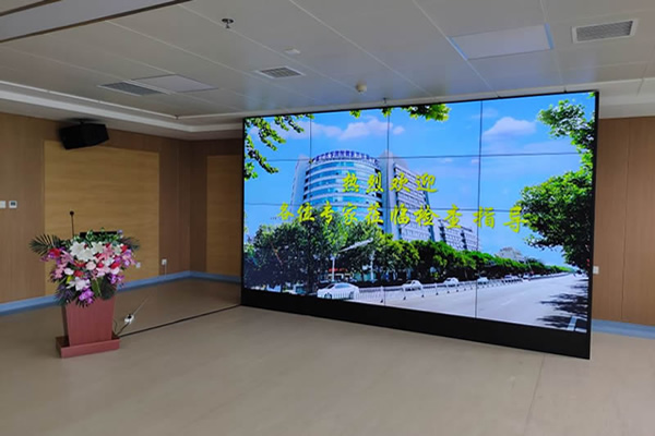 55寸液晶拼接屏:单屏尺寸为1213.4x684.2mm,4x4拼接后尺寸为220寸,总体长宽尺寸为4857x2740mm。