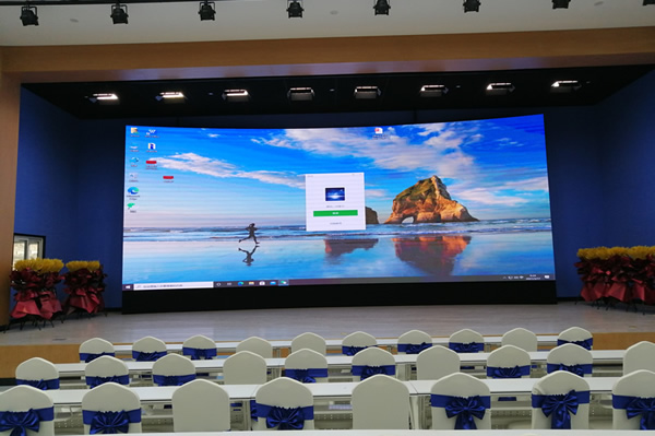 如果选择LED显示屏,一般情况下建议选择一个P2左右的产品,刷新率在3840Hz的,直接安装在背景墙上就可以,只需要一台计算机与外置拼接处理器来控制就可以实时显示计算机上的图像,包括文字信息、数据内容、视频等。