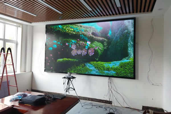 LED显示屏分两种:一种是室外LED显示屏,另一种是室内LED显示屏,而在会议室自然是使用室内的小间距LED系列, p2.0间距以下的产品称之为小间距,它的特点是屏幕没有拼缝,而且可以随意拼接。随着控制设备的研发,目前也可以实现一些监控图像的显示,但是功能不如液晶强大,另外它的分辨率在同等显示面积内也不如液晶,所以它更适合远看,适合安装在大型的会议场合,如会议厅、报告厅,产品发布会等。