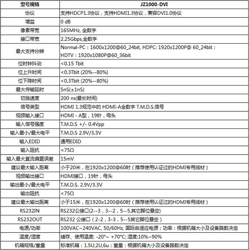 DVI矩阵JZ1000系列是专用于DVI高清2K信号输入与输出的控制设备,其特点与HDMI信号相同,都是高清信号控制系统,包含4进4出、4进8出、4进16出、8进8出、8进16出等;