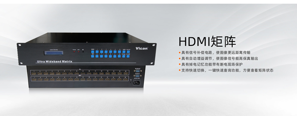 1、HDMI矩阵是目前应用量大的一款电脑信号的切换设备,支持多路输入与输出。