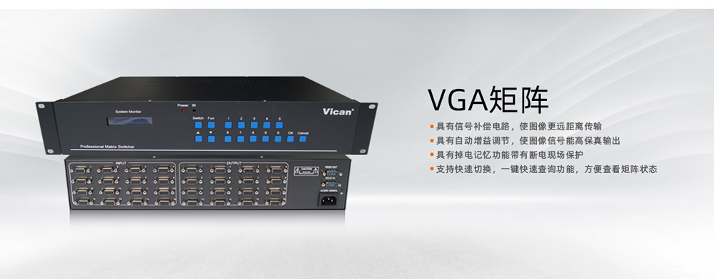 JZ1000系列是专门针对信号的切换而研发的控制设备,内部带有缓存电路,信号补偿电路,自动增益调节,使图像信号能高保真输出且更加稳定 ;