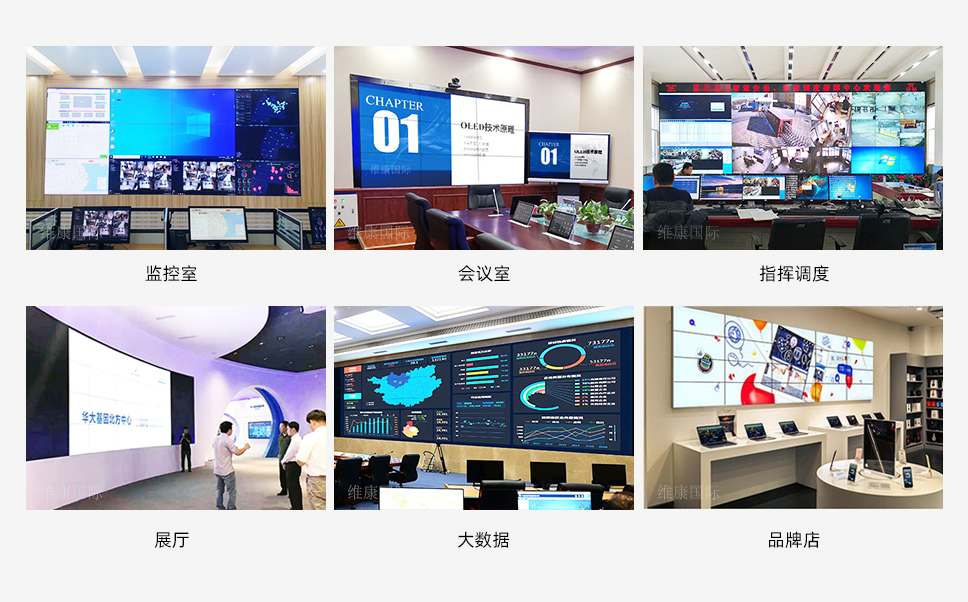 由于拼接屏的拼缝直接影响的是其观看效果,所以46寸拼接屏0.88mm这种小拼缝的产品多以高端的会议室、展厅、大数据显示应用为主。